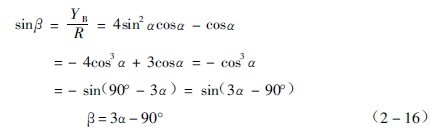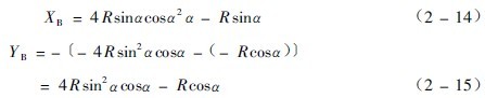 確定B點的坐標:B點是鋼球拋落的終點,也是它開始圓運動之點,所以它的坐標xb和yb即公式(2-6)和(2-7)聯(lián)立時的公解。將公式(2-7)中的y代入公式(2-6)中,然后逐步化簡,得到