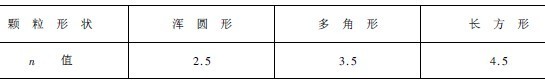 n———指數,與顆粒的粒度和形狀有關(見表1和2)。