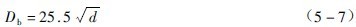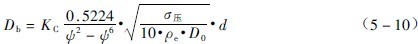 式(5-2)不能直接使用,必須針對特定礦石作兩組試驗,列出兩個方程式成一組,從方程組求解出i及n才能得出特定的球徑方程式,方可應用。為了方便應用,K.A拉蘇莫夫提出,對中硬礦石可以直接使用下面的簡便計算式計算Db(mm)