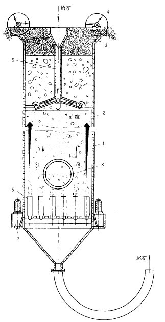 2)尾礦管堵塞。這是操作中容易發(fā)生的故障。原因多是由于礦漿中的礦石粒度太大,或者因給礦量突然增大和尾礦管閘門開的太小以及柱中落入其它雜物。排除方法:應(yīng)事先在排礦管下端的適當(dāng)位置安裝高壓水管或高壓風(fēng)管,一旦發(fā)生堵塞,可用高壓水或壓縮空氣來(lái)疏通。并檢查粒度與給礦量,至調(diào)到正常為止。