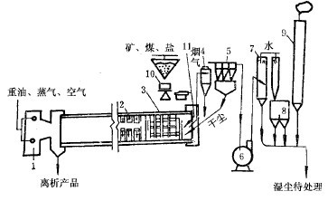 根據(jù)焙燒階段物料處理方法的不同,離析法分為“一段離析”和“兩段離析”兩種類型。一段離析法是將礦石、食鹽及還原劑混合后一并進(jìn)入焙燒爐內(nèi)(大部分采用臥式回轉(zhuǎn)窯),物料的加熱和離析都在同一設(shè)備中進(jìn)行。兩段離析法又稱“托爾科”法,是先將礦石預(yù)熱至反應(yīng)溫度,然后混入適量的食鹽和還原劑進(jìn)入離析反應(yīng)器內(nèi)離析。現(xiàn)在的生產(chǎn)表明,兩種離析法都能達(dá)到較高的選別指標(biāo)。